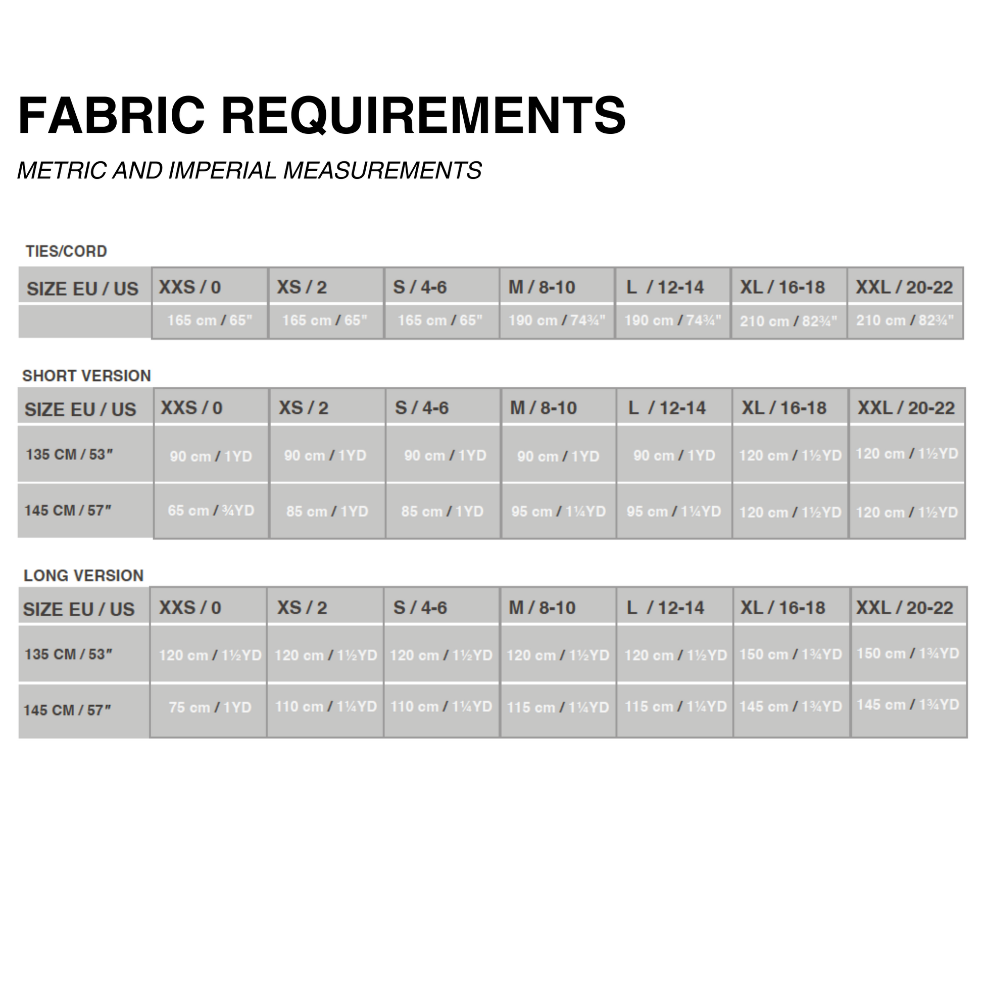 NB: if you want to make your own ties you have to add 30 cm (11 3/4") to the total fabric requirement.