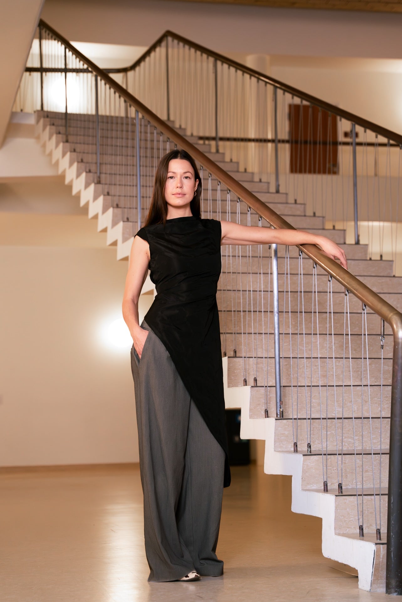 This pattern is designed for woven fabrics. Fabric types such as woven viscose, lightweight wool, lightweight denim, crepe, and satin all work well for this sleeve.