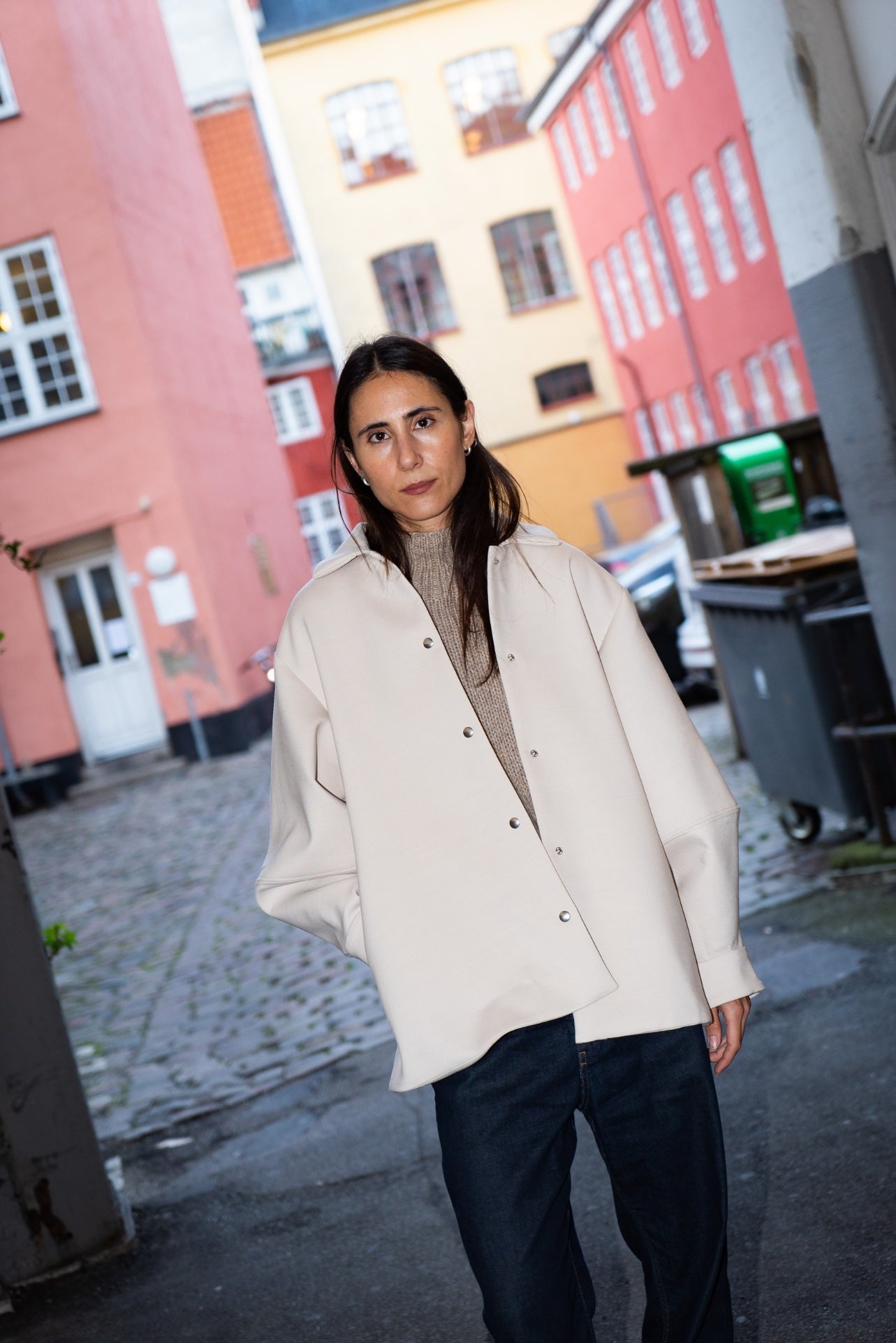 The pattern comes with all sizes from XXS-XXL. The most important measurement to consider for this jacket is the bust measurement. The model in the photos are approx. 176 cm tall and is wearing a size S.