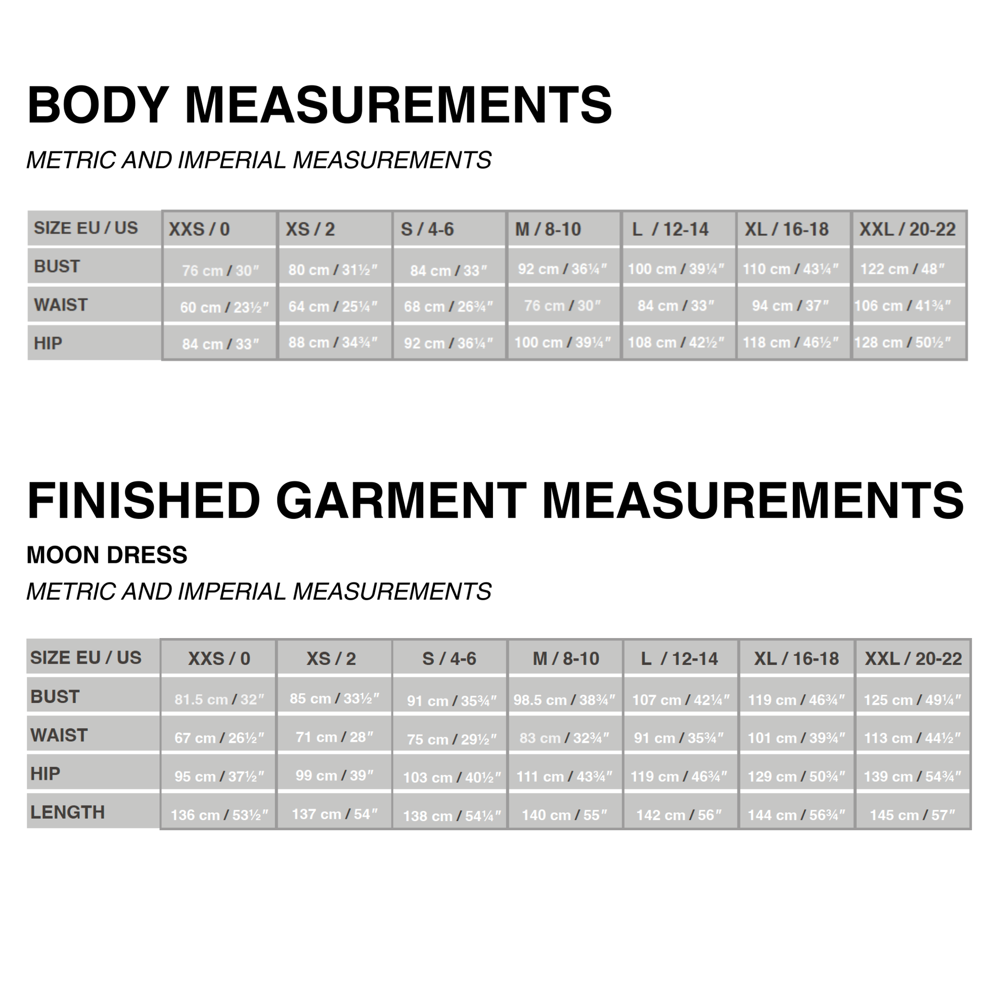 CM (INCHES) - MOON DRESS
