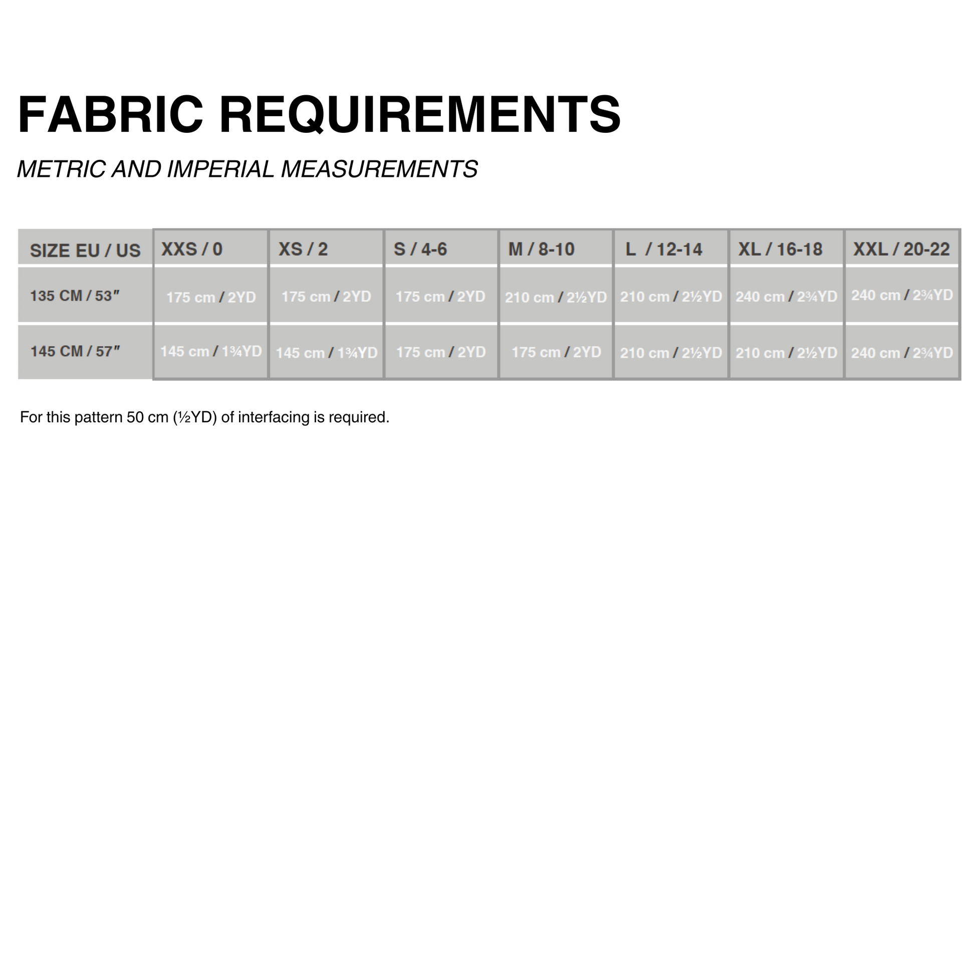 **Pattern and the instruction manual include metric (cm) and imperial (inches/yards) measurements**