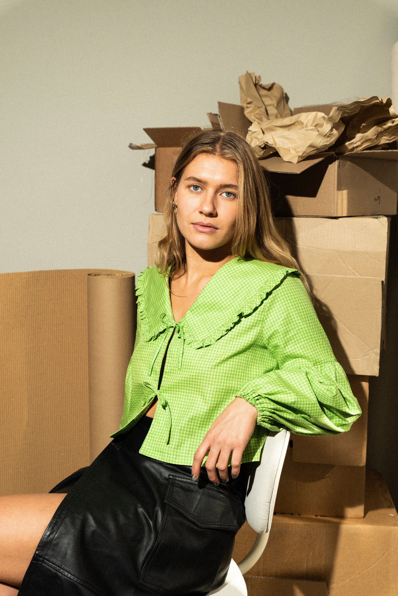 The pattern is made primarily for woven fabrics. Avoid fabrics that are too heavy or too light. Fabrics such as poplin, woven viscose, and cotton all work well for this collar.