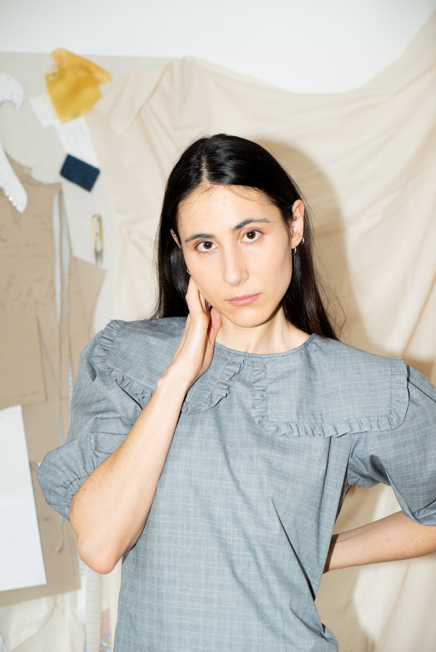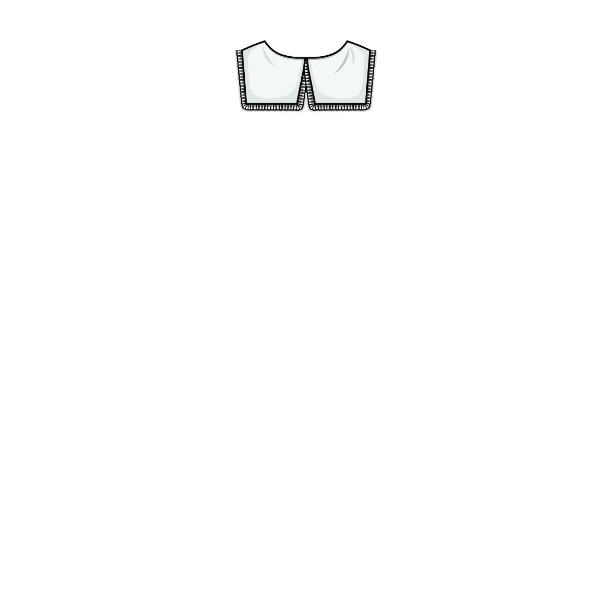 The PURITAN collar is a collar with square flaps in the front and the back. It is for dresses and blouses with a round neck and is sewn in a ‘sandwich’ between the facing and the neckline.