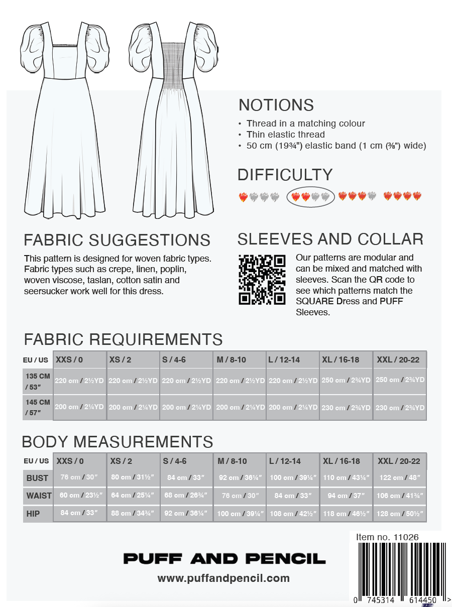 This is the paper pattern for the SQUARE Dress with PUFF Sleeves. This pattern includes a complete video sewing tutorial.