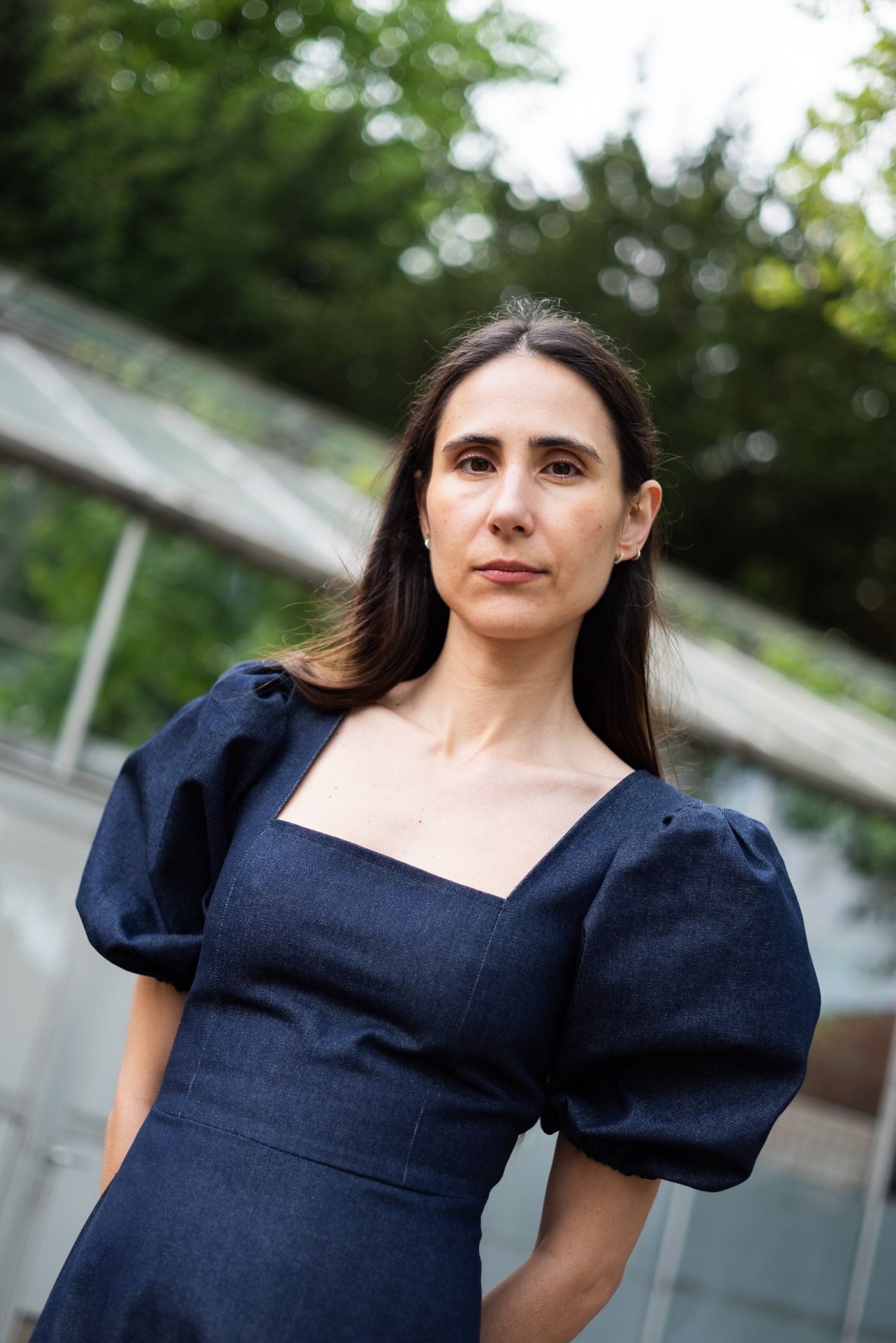 The PUFF Sleeve is a short sleeve with a lot of volume. The volume at the shoulder is created by gathering the top of the sleeve with a gathering stitch. The sleeve ends just above the elbow and is finished with a casing containing an elastic.