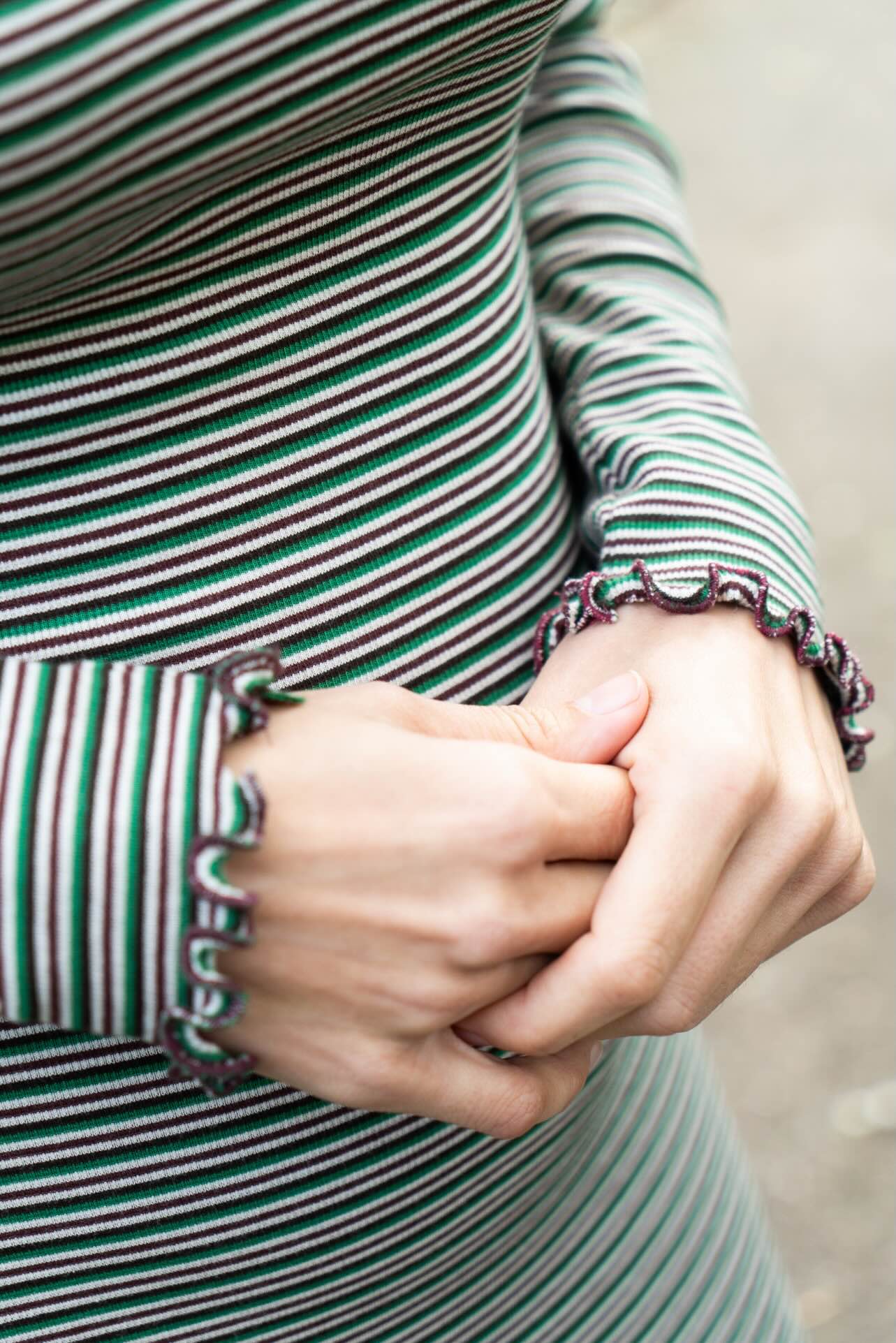 This pattern is designed for stretchy fabrics, ensuring optimal results for the wavy hem. Make sure to choose a fabric with a nice drape. Fabrics such as stretchy mesh, fine cotton rib, and jersey all work well for this dress.