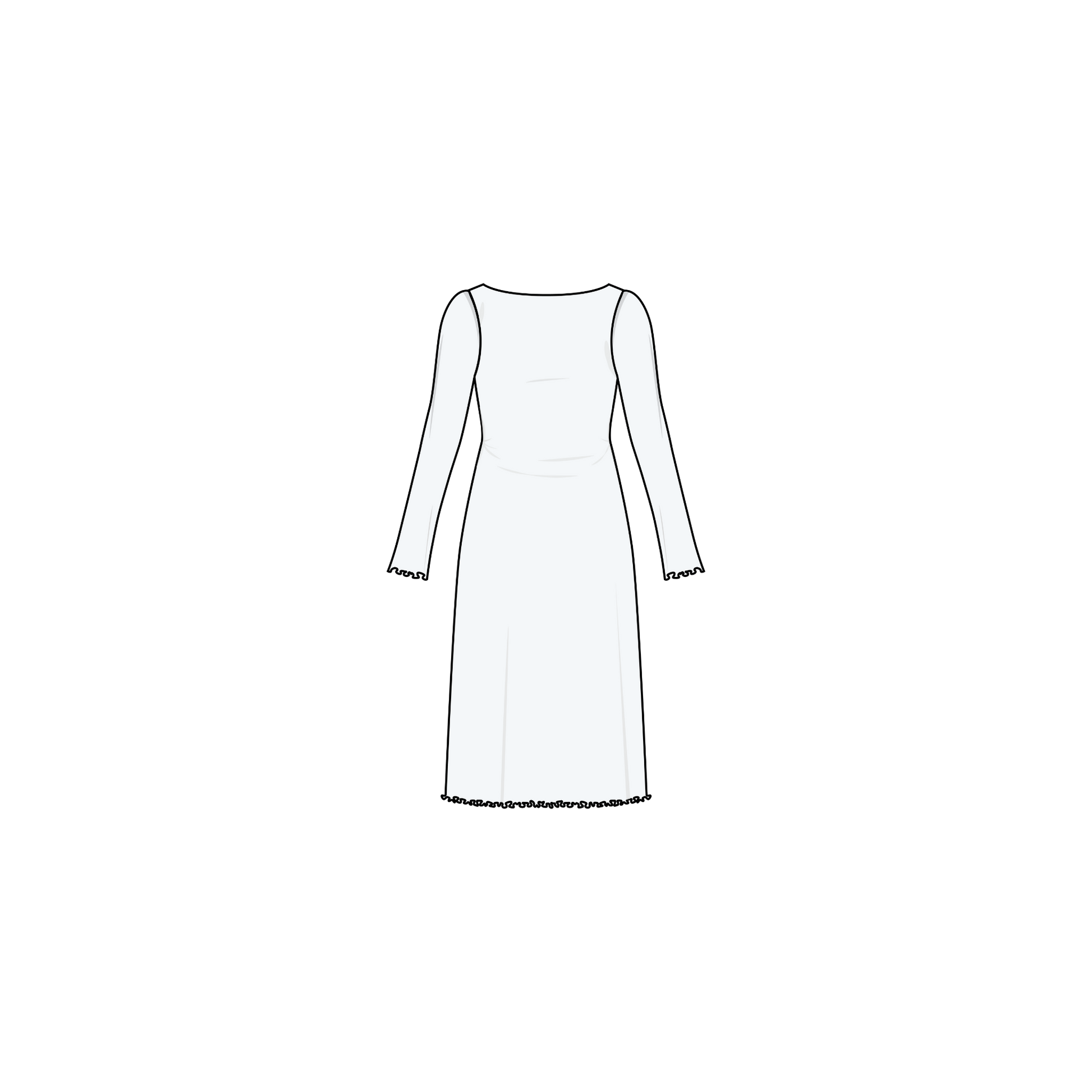 The WAVY HEM Dress features a true body-hugging silhouette and an elegant boat neck. The bottom of the dress is finished with a beautiful wavy hem. The wavy finish can be sewn on a regular household sewing machine. The dress can be made in a long or a short version.